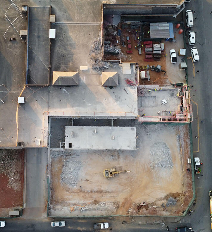 The project included large-scale, multi-storey demolition, as well as additions to the existing structure, followed by the renovation of all external and internal public spaces.